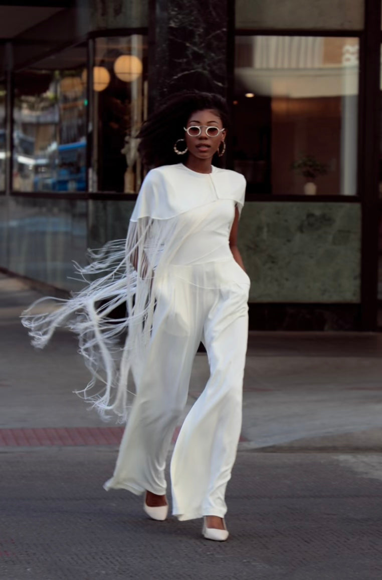 WIDE LEG JUMPSUIT WITH FRINGE JACKET SET